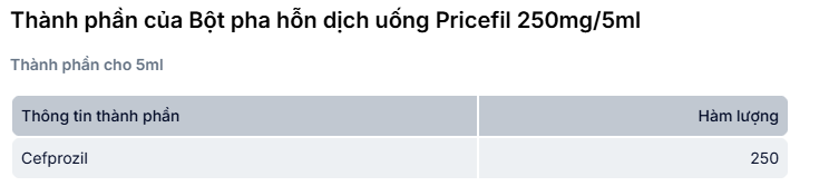 Công dụng của Bột pha hỗn dịch uống Pricefil 250mg/5ml