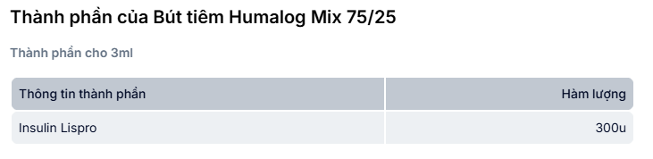 Bút tiêm Humalog Mix 75/25 được sản xuất bởi Eli Lilly Italia S.P.A, thành phần chính bao gồm 25% dung dịch insulin lispro và 75% hỗn dịch insulin lispro protamin, thuốc được dùng để điều trị bệnh nhân bị đái tháo đường cần insulin để duy trì sự ổn định nội môi glucose bình thường.