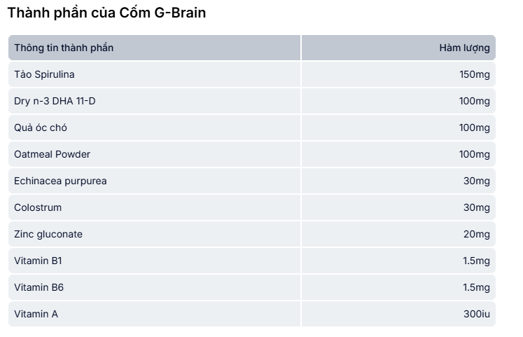 G-Brain bổ sung DHA và các vitamin hỗ trợ phát triển não bộ cho trẻ trong độ tuổi tăng trưởng.