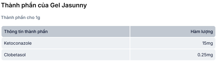 Ketoconazol: Sự hấp thu qua da của ketoconazole trong Jasunny không đáng kể, do đó không tạo ra được một nồng độ có thể phát hiện ở máu.