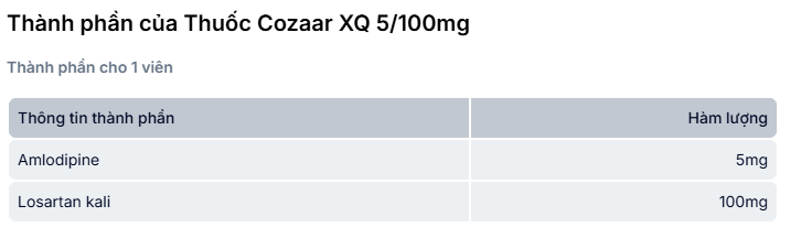 Losartan là thuốc có hiệu quả điều trị tăng huyết áp, liều mỗi ngày một lần 50mg đến 100mg, còn Amlodipine có hiệu quả ở liều 5mg đến 10mg khi dùng đơn trị liệu. Liều tối đa được khuyến cáo của COZAAR XQ là 100mg/5mg.