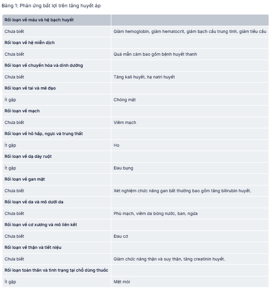 Các phản ứng phụ được báo cáo từ các nghiên cứu lâm sàng, kinh nghiệm hậu mãi và các kết quả cận lâm sàng được liệt kê dưới đây theo nhóm hệ thống cơ quan.