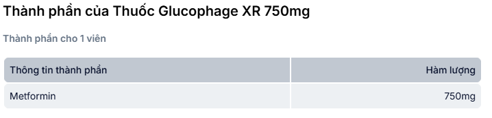 Thuốc Glucophage XR 750 của công ty Merck Sante S.A.S - Pháp, thành phần chính Metformin hydrochlorid. Đây là một loại thuốc được dùng để trị bệnh đái tháo đường typ 2 ở người lớn, đặc biệt ở bệnh nhân quá cân, khi chế độ ăn kiêng và tập thể dục đơn thuần không hiệu quả trong kiểm soát đường huyết.