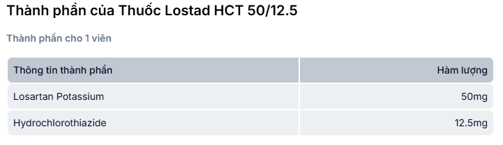 Liều thường dùng là 1 viên Lostad HCT 50/12,5 x1 lần/ngày.