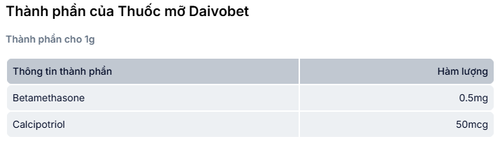 Thuốc mỡ Daivobet® phối hợp tác dụng dược lý của calcipotriol hydrate như một chất tương tự vitamin D3 tổng hợp và betamethasone dipropionate như một corticosteroid tổng hợp.