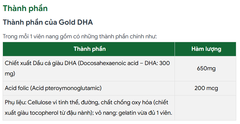 Sản phẩm Gold DHA không phải là thuốc, không có tác dụng thay thế thuốc điều trị.