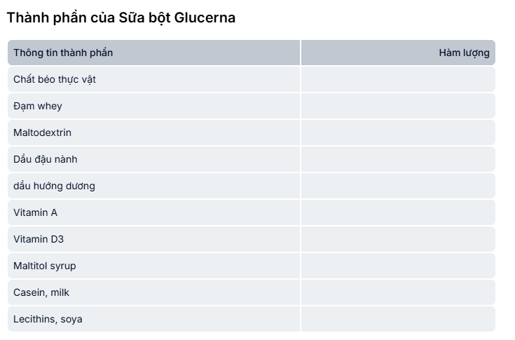 Glucerna chứa nhiều thành phần có lợi hỗ trợ kiểm soát đường huyết