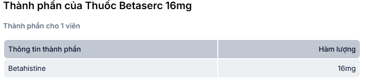 Thuốc Betaserc 16mg của Công ty Abbott Healthcare SAS - Pháp, thành phần chính Betahistine dihydrochloride 16mg là loại thuốc được sử dụng để điều trị hội chứng Ménière - một tình trạng gây ra bởi tăng áp lực tai trong do thừa chất lỏng.