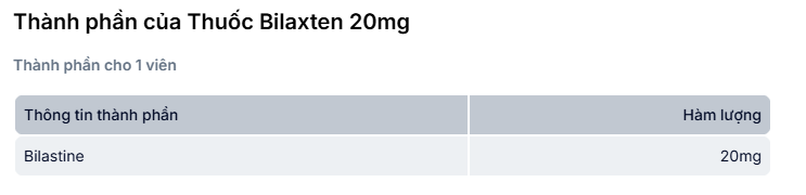 Bilaxten 20mg dạng viên nén của Công ty sản xuất Menarini (Pháp) có thành phần chính là Bilastine. Bilaxten 20mg là thuốc điều trị triệu chứng của bệnh viêm mũi, viêm kết mạc (theo mùa và mạn tính), nổi mề đay.