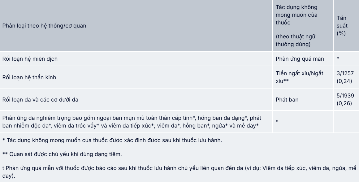 Phụ lục A: Tần suất tác dụng không mong muốn của thuốc từ các thử nghiệm lâm sàng.
