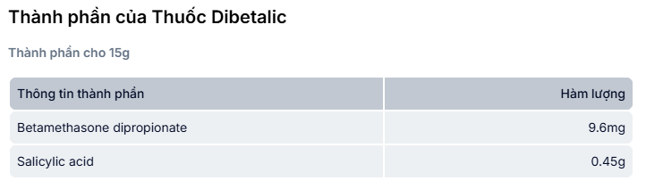 Dibetalic của Công ty Cổ phần Traphaco, có thành phần chính là Betamethason dipropionate và acid salicylic.