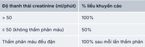 Điều chỉnh liều dựa trên chức năng thận.