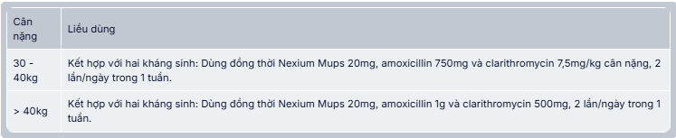 Phòng ngừa tái phát loét dạ dày - tá tràng ở bệnh nhân loét có nhiễm helicobacter pylori: Nexium Mups 20mg, amoxicillin 1g và clarithromycin 500mg, tất cả được dùng 2 lần/ngày trong 7 ngày.