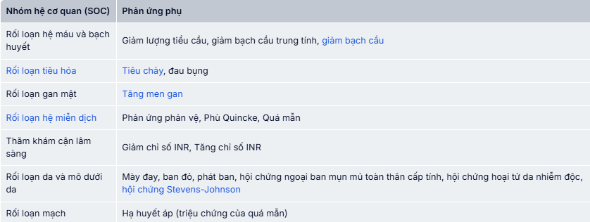 Đồng thời, có tăng nồng độ transaminase gan (AST, ALT), lactate dehydrogenase và bilirubin cùng với giảm mức prothrombin, có thể xảy ra từ 12 - 48 giờ sau khi dùng thuốc.
