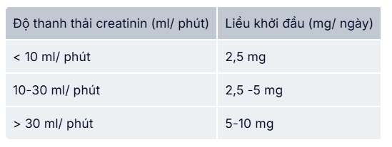 Liều sử dụng ở bệnh nhân suy thận phải được dựa trên độ thanh thải creatinine: